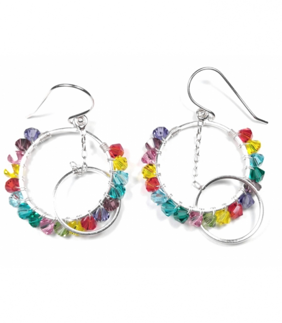 Pendiente plata gancho cuarzo blanco
