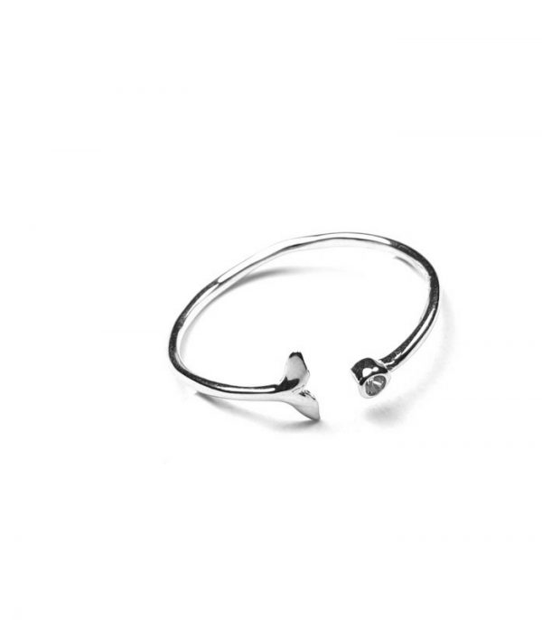 Anillo Plata Cola de ballena y circonita ajustable