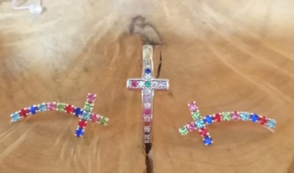 Anillo cruz plata rodiada circonitas de colores tamaño 17
